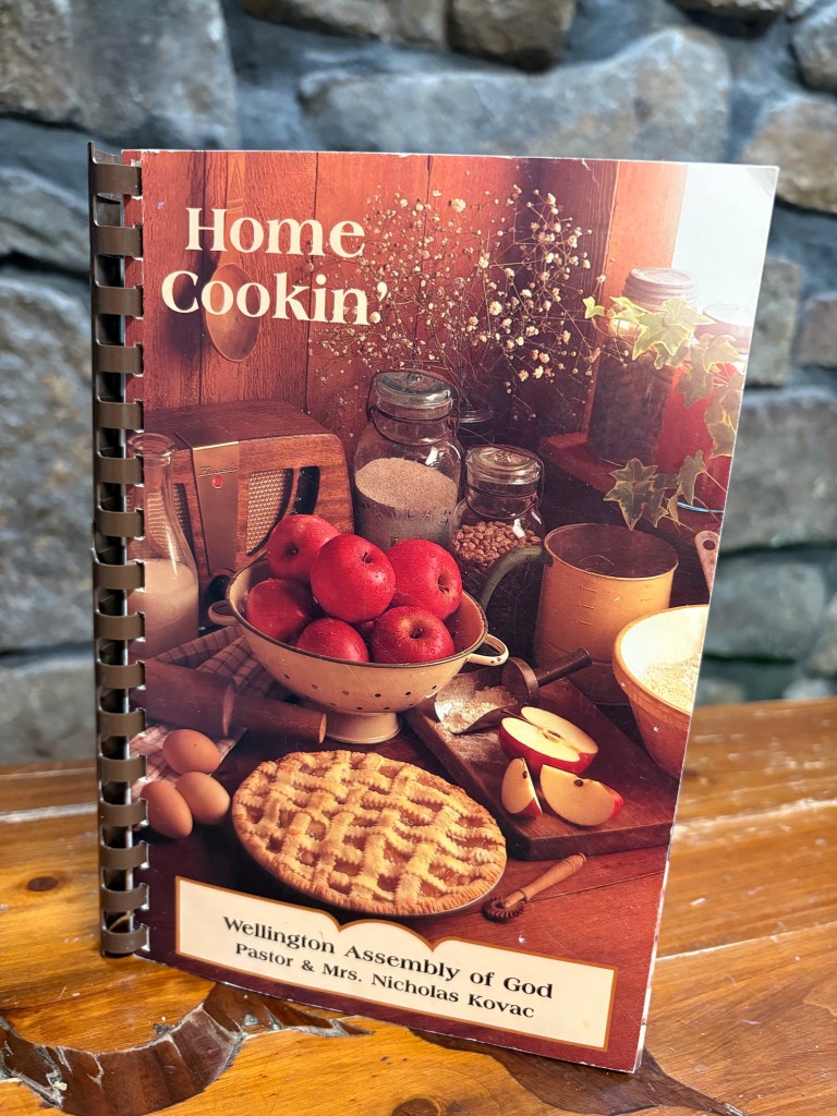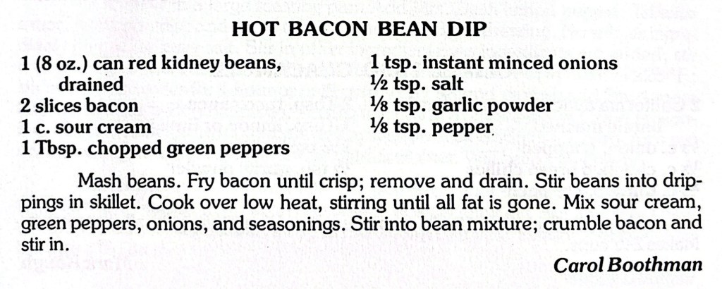 I didn’t get far when I opened the cookbook, “Home Cookin’ Wellington Assembly Of God”. Page one held my attention with Hot Bacon Bean Dip and it didn’t disappoint!