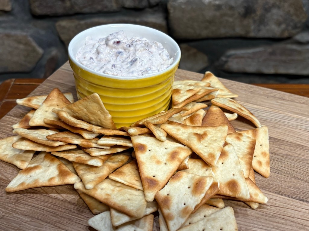 - It didn’t say what to serve this dip with so I decided on pita crackers. I wasn’t wrong. Fab!
