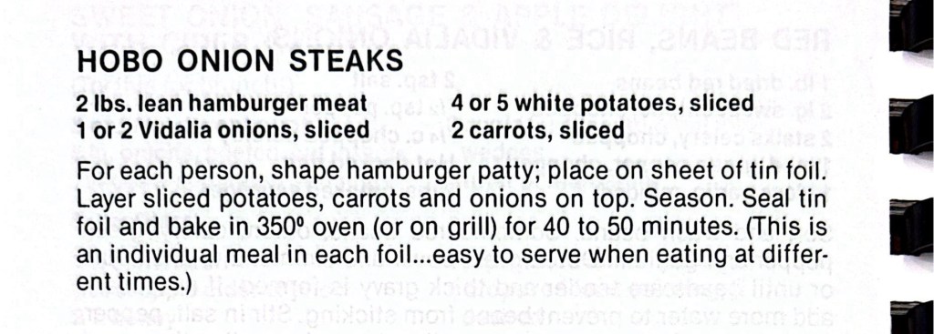 This week I chose Hobo Onion Steaks. It’s about to be camping time and this is a great one to cook outdoors or indoors.