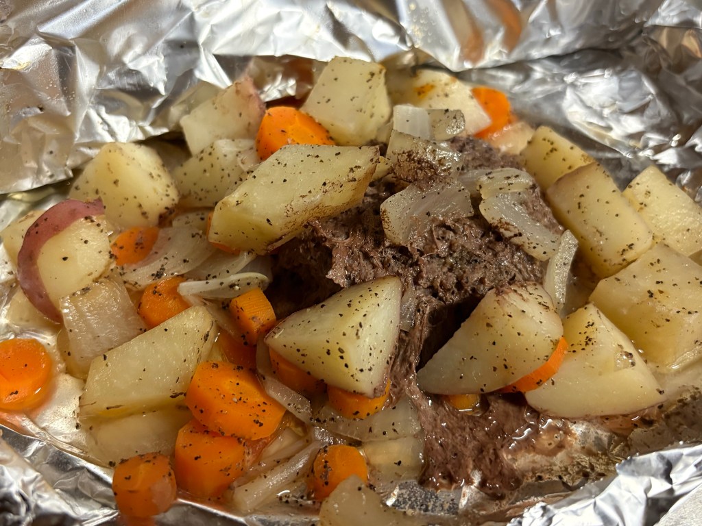 1. It says to cook them 40-50 minutes. I went with an hour and some of the potatoes were still not completely done. Not a huge deal.