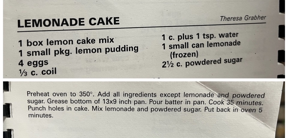 While flipping thru, “Variety Pack: Favorite Recipes From Oppelo Kitchens” I stumbled across Lemonade Cake. Yum! Let’s get into it!