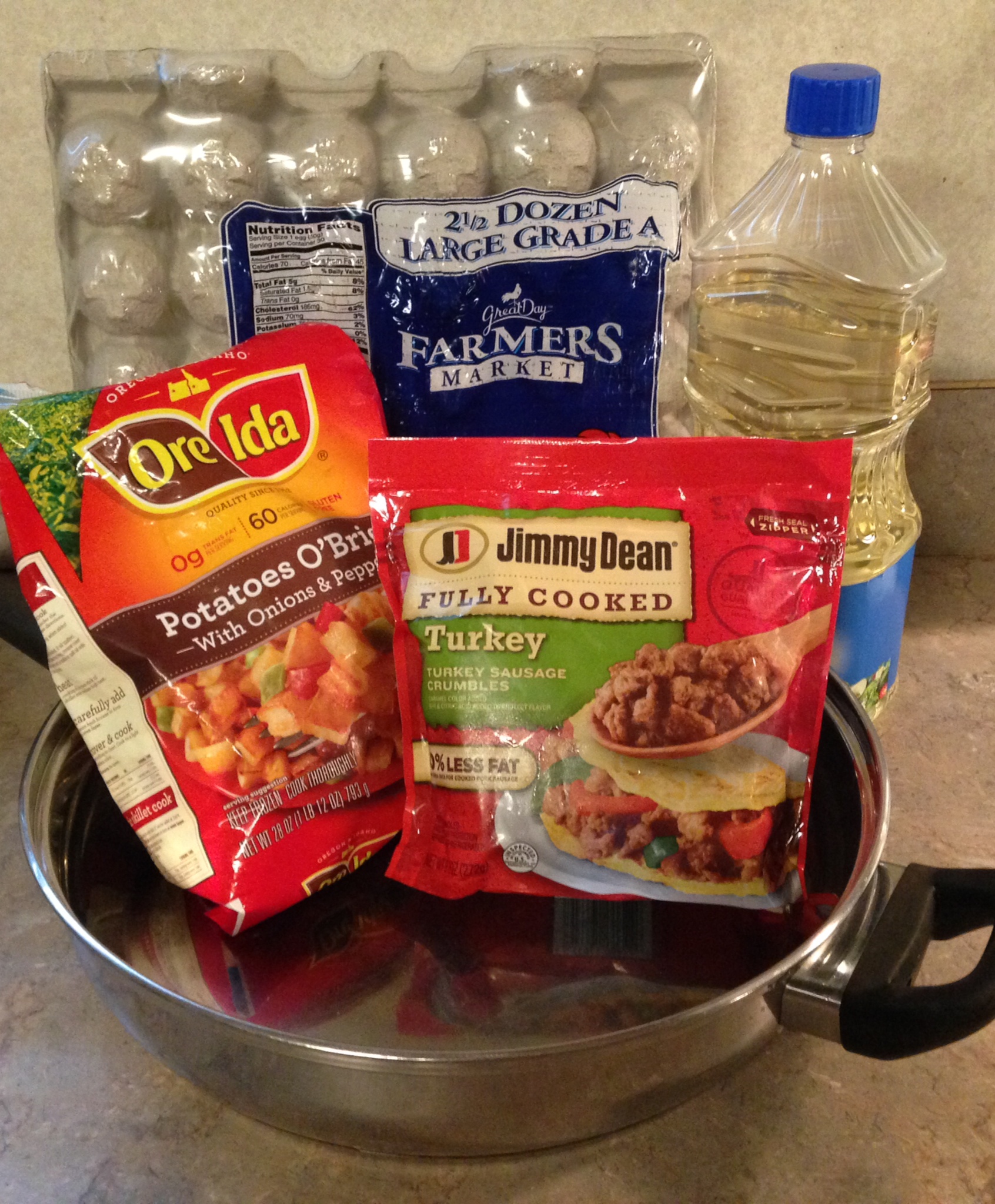 - 28 oz package Ore-Ida Potatoes O’Brien with peppers and onions