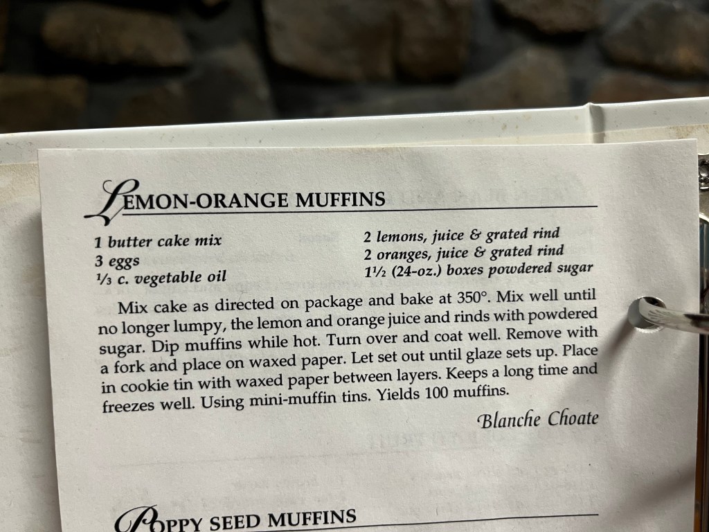 This is a pretty big cookbook. I didn’t get too far at all thru, “ A Harvest Of Recipes: St. Wenceslaus Catholic Church Dickinson, North Dakota” and stumbled across Festive Lemon Bread. Puddin in bread?! Let’s do it!