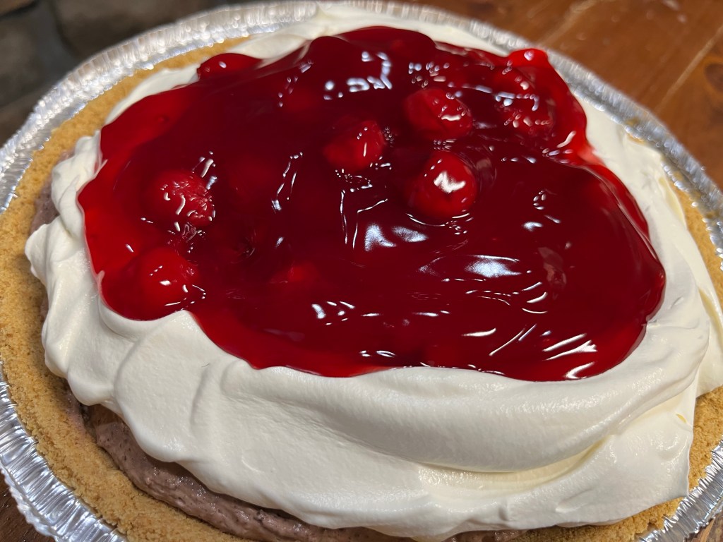 - This looks like it is going to spill over the top of the pie pan when you get it ready to cook. It didn’t but I’d still put a pan underneath just in case it decides to jump ship.